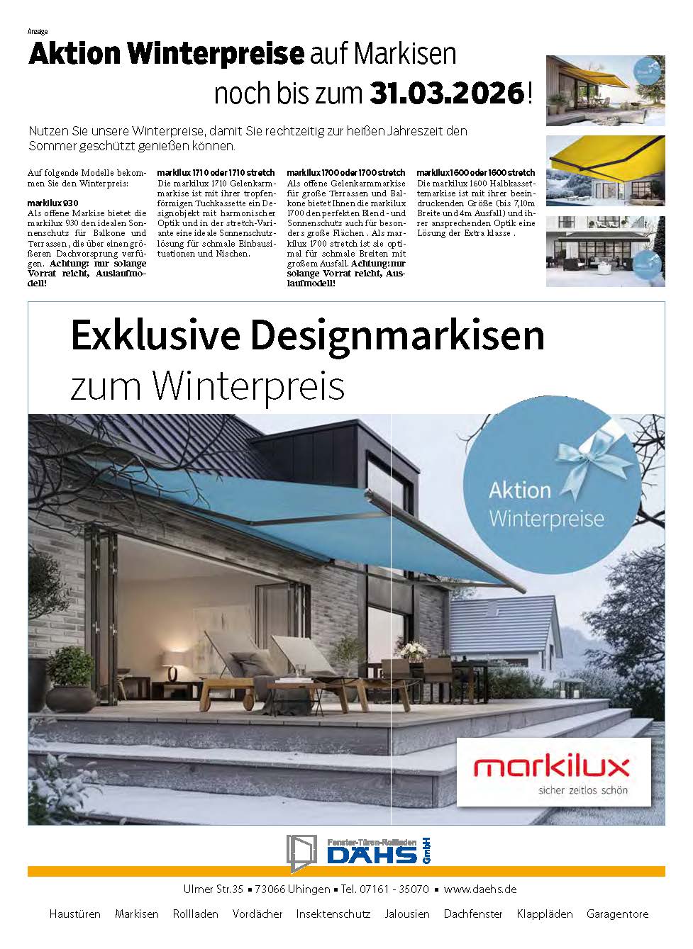 Rollladenbau Dähs | Ulmer Str. 35 | 73066 Uhingen bei Göppingen